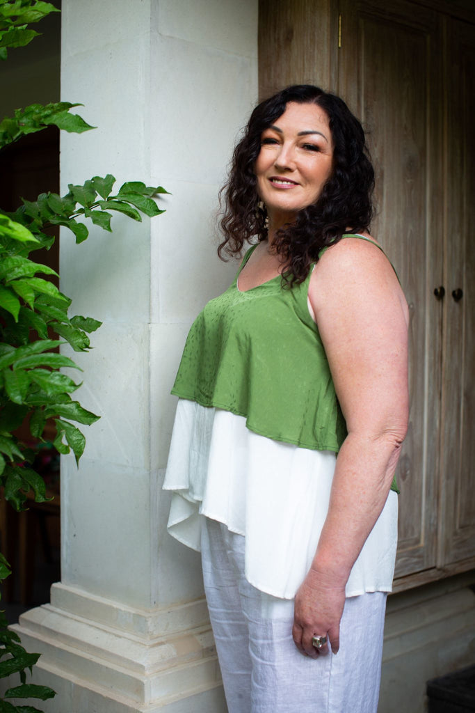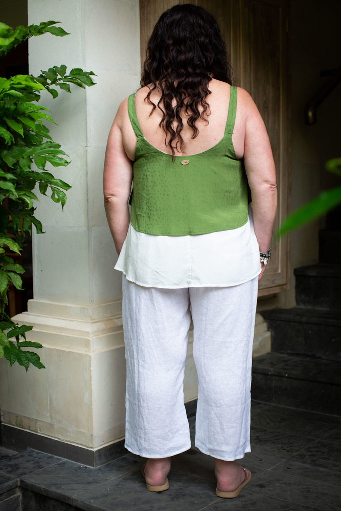 The fabric is a floaty cool natural textured bamboo that will give breathability and comfort on hot Aussie summer days. The pretty leaf pattern is woven into the fabric, giving a touch of shimmer when the light captures it, and making the top just a touch dressier. Pair it with our lovely linen pants, jeans, skirt or shorts and you will be good to go.