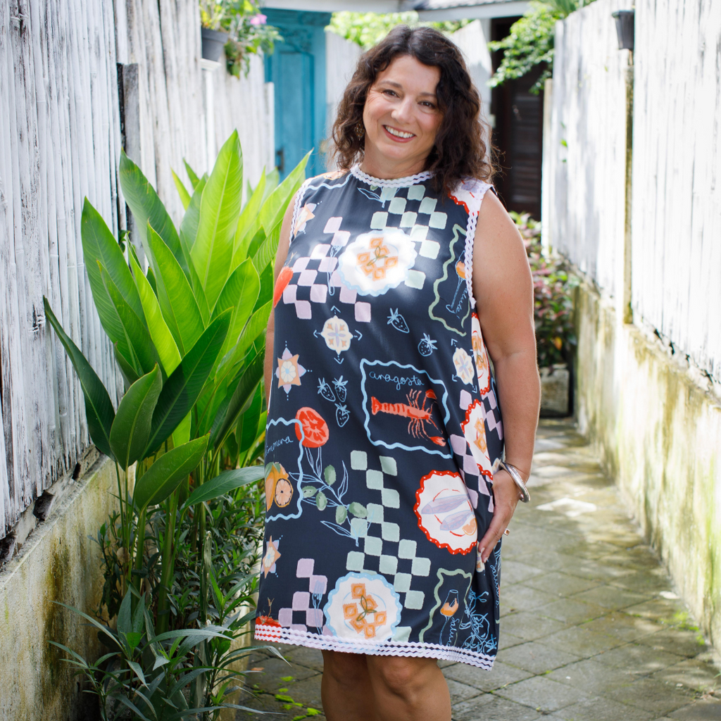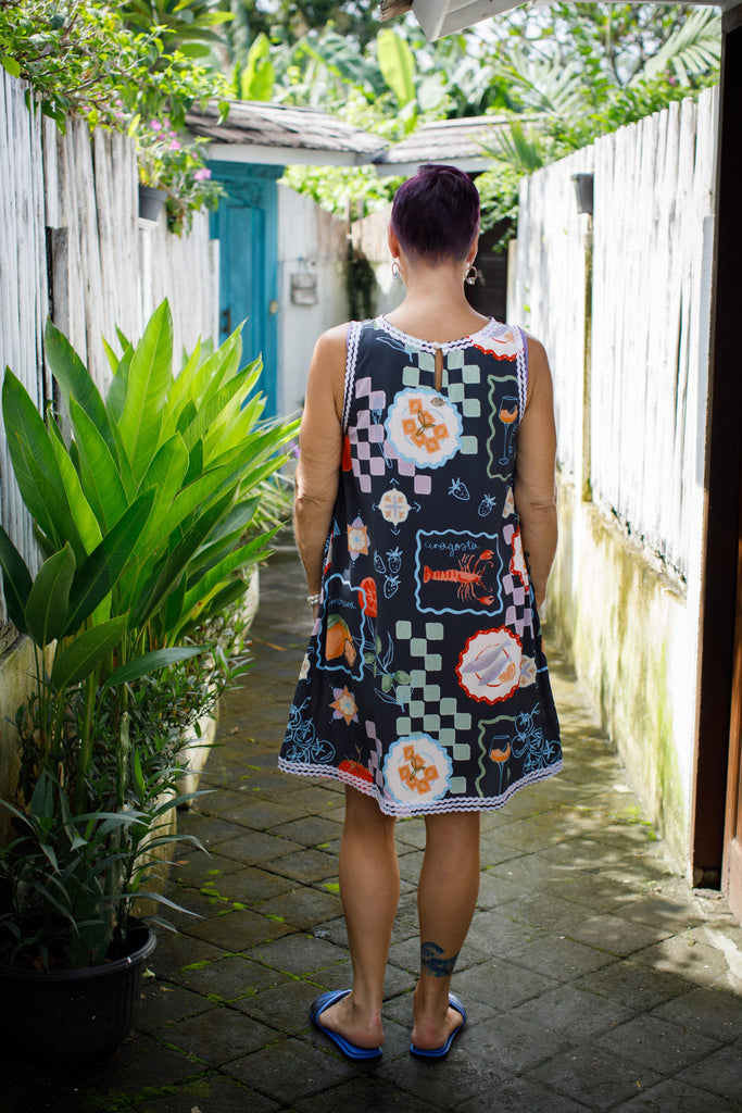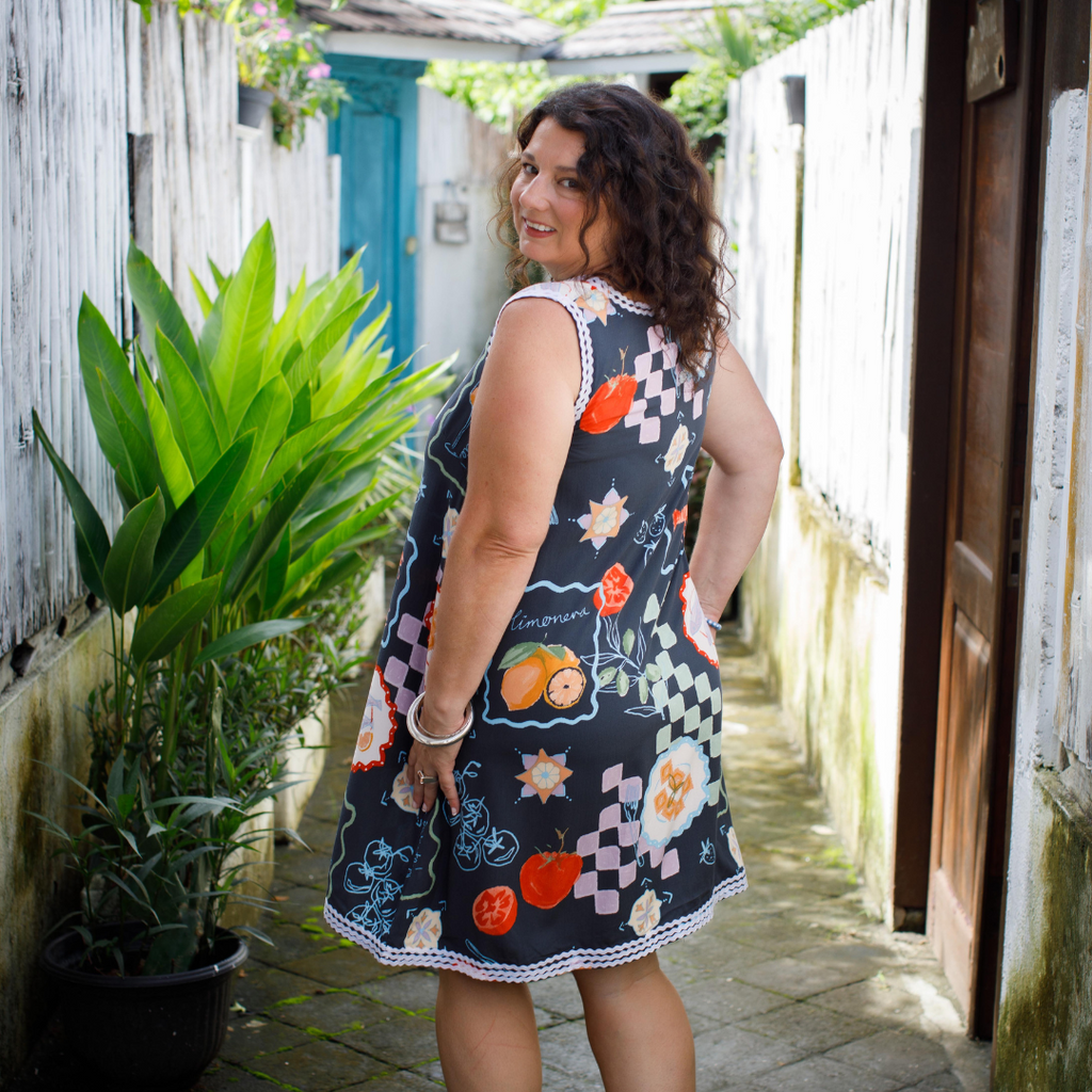 Slip into this dress and feel an instant boost of confidence. The playful print catches the eye and lifts your spirits, while the chic zigzag trim adds a touch of whimsy. It's like wearing a smile, with a dash of sass.